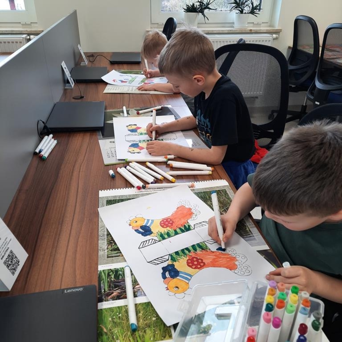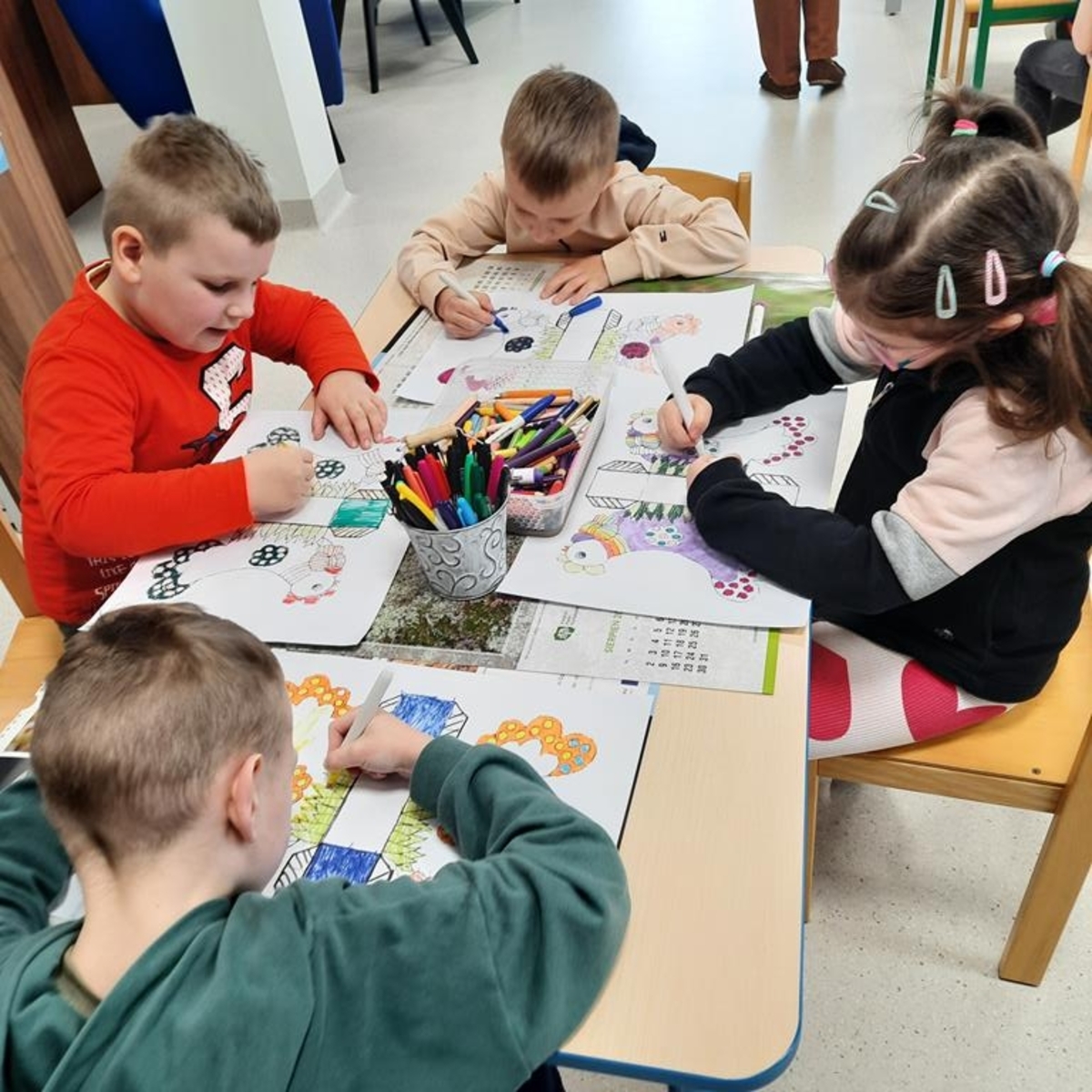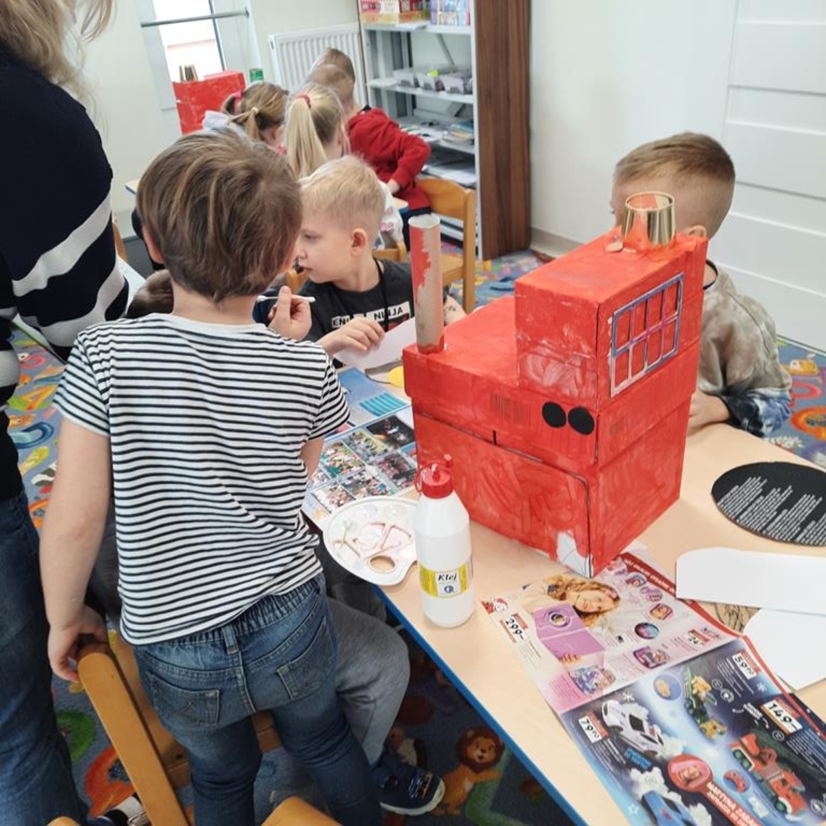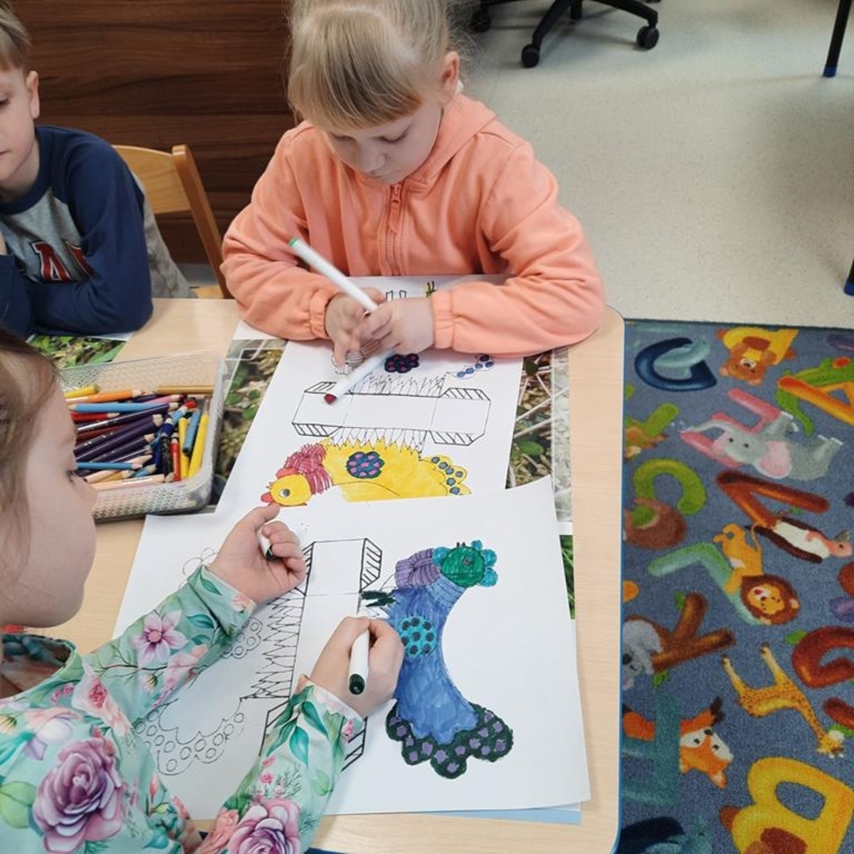 Grupa dzieci sześcioletnich w bieżącym roku szkolnym systematycznie , raz w tygodniu , uczestniczy w zajęciach literacko- plastycznych organizowanych przez Gminną Bibliotekę Publiczną w Jabłonce Kościelnej. Podczas spotkań, w oparciu o wybrane teksty literatury dziecięcej, wykonywane są prace plastyczne. Jest to idealna okazja, by rozwijać wyobraźnię i kreatywność manualną przyszłych uczniów. Tworzenie często przestrzennych prac ,uczy zaangażowania, cierpliwości i współdziałania. Wykonane prace dostarczają dużo satysfakcji i budują poczucie własnej wartości . Zależy nam na tym ,żeby biblioteka była miejscem , w którym miło i atrakcyjnie można spędzić czas.