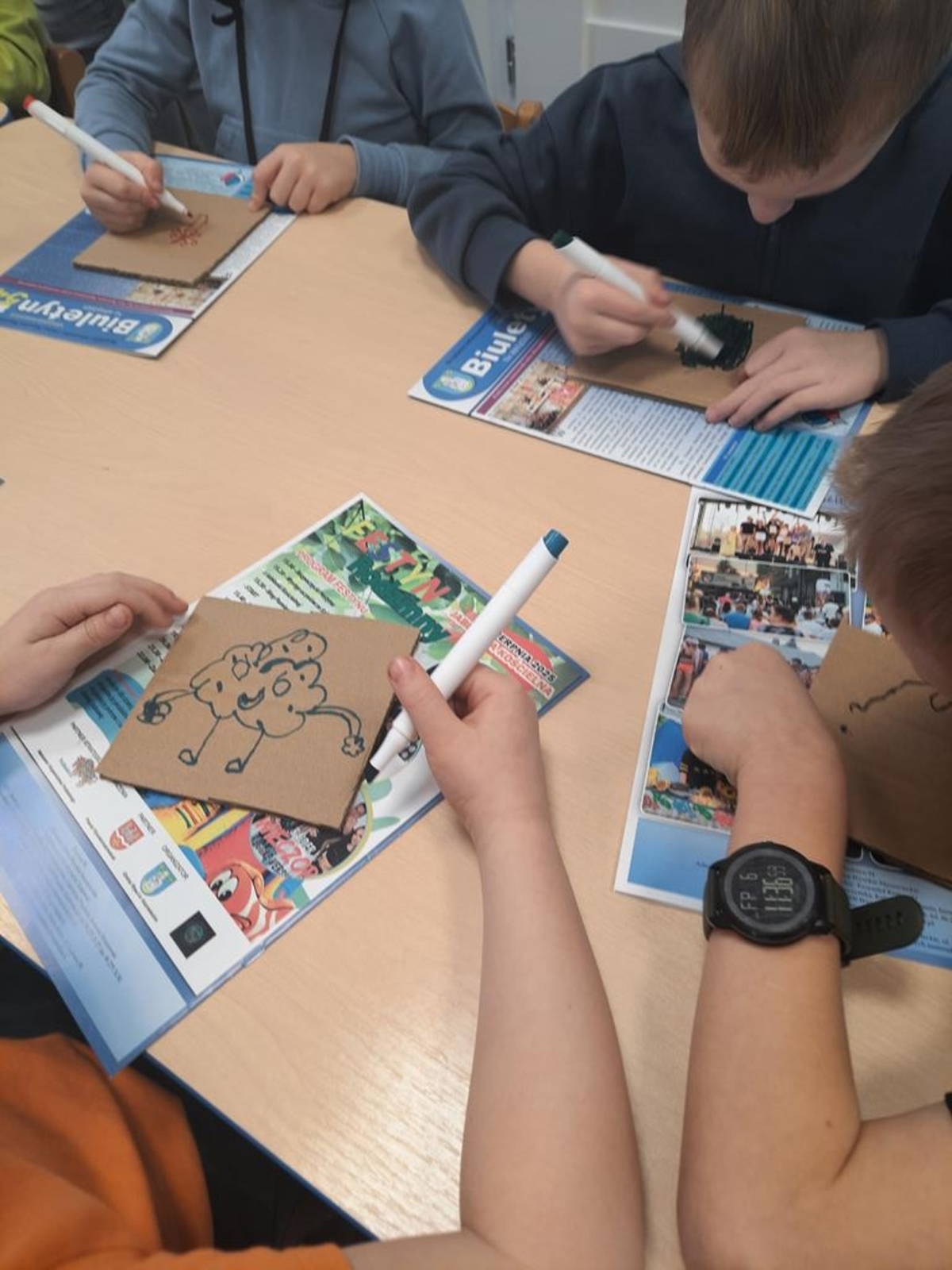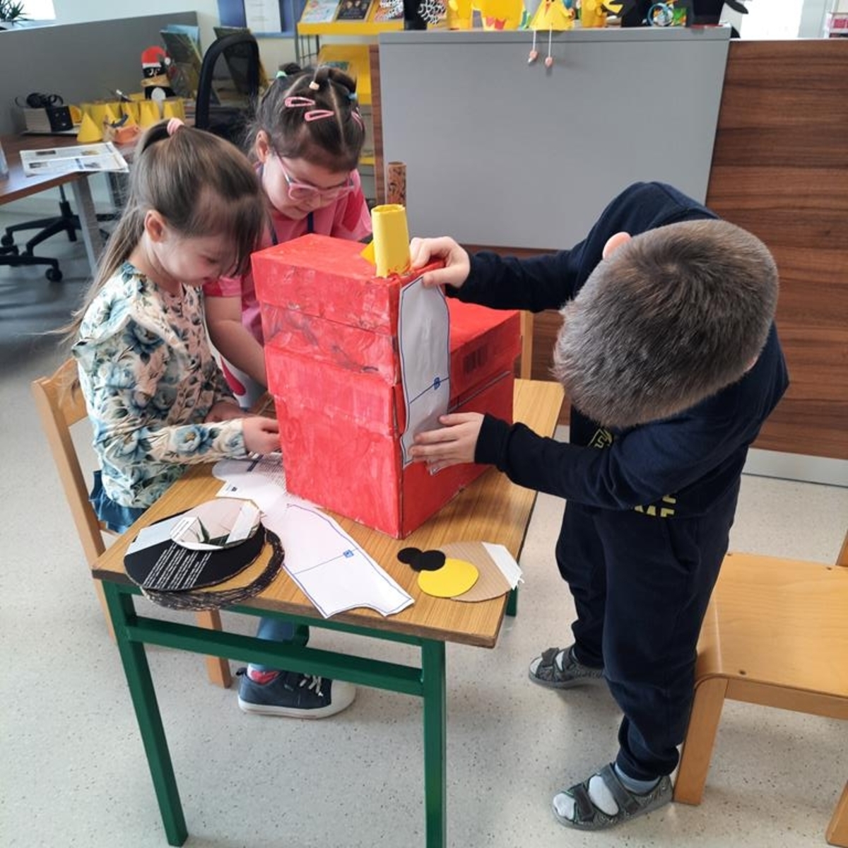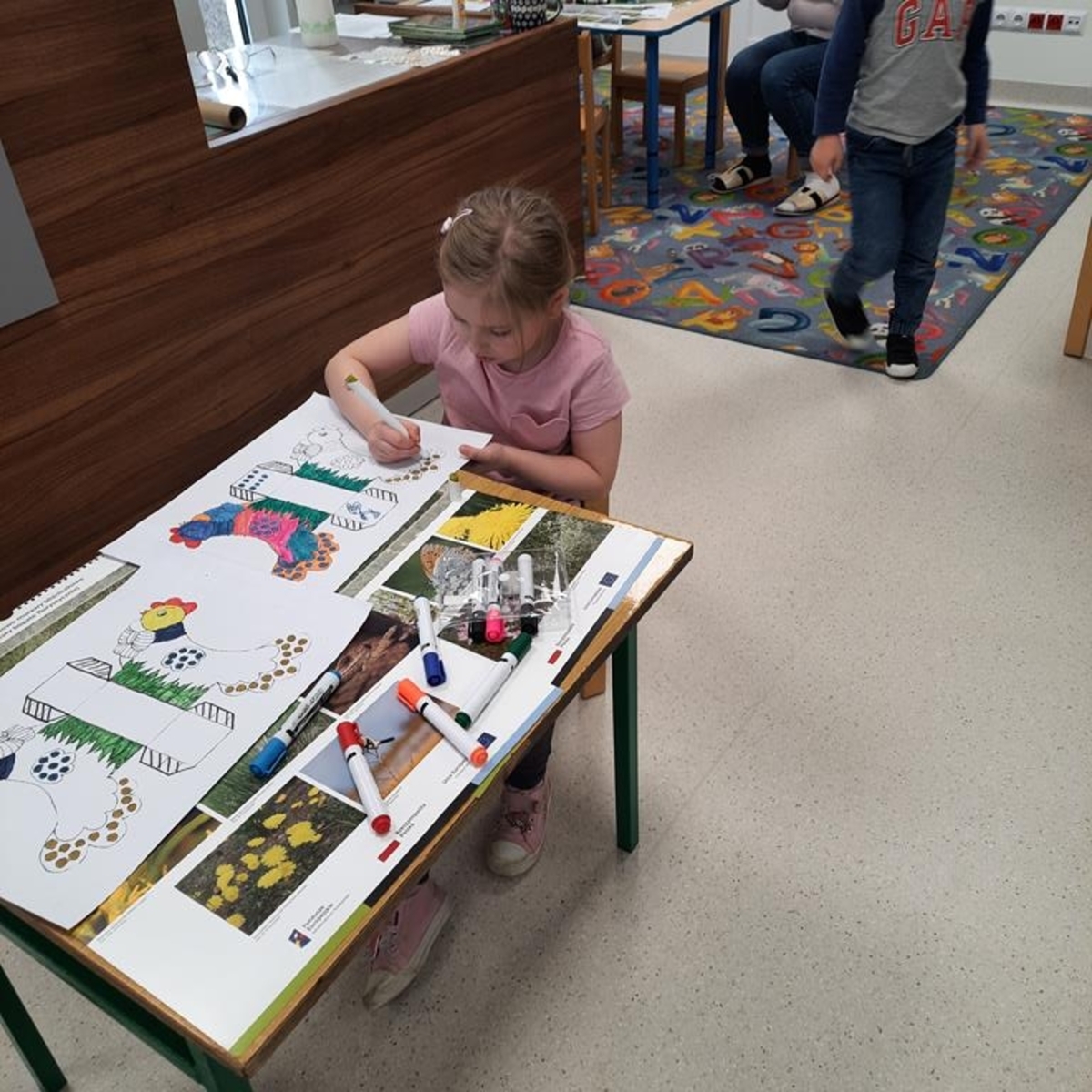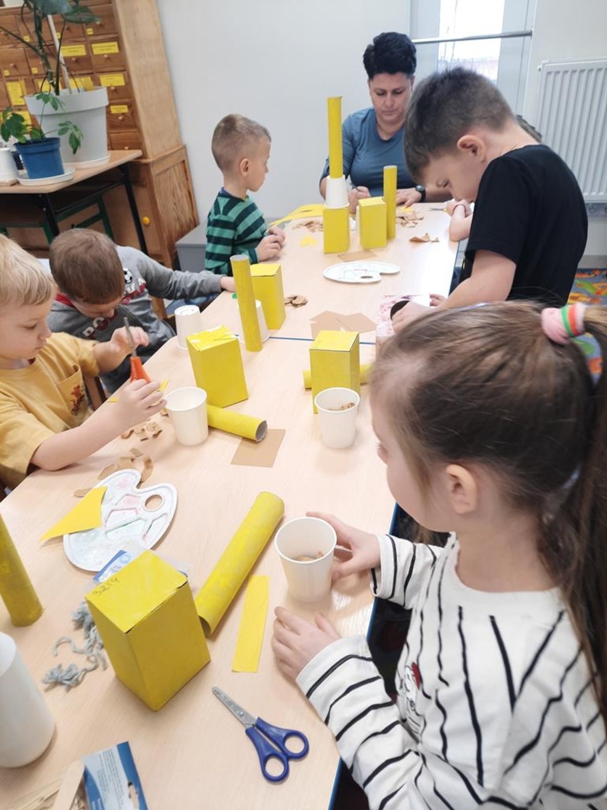Grupa dzieci sześcioletnich w bieżącym roku szkolnym systematycznie , raz w tygodniu , uczestniczy w zajęciach literacko- plastycznych organizowanych przez Gminną Bibliotekę Publiczną w Jabłonce Kościelnej. Podczas spotkań, w oparciu o wybrane teksty literatury dziecięcej, wykonywane są prace plastyczne. Jest to idealna okazja, by rozwijać wyobraźnię i kreatywność manualną przyszłych uczniów. Tworzenie często przestrzennych prac ,uczy zaangażowania, cierpliwości i współdziałania. Wykonane prace dostarczają dużo satysfakcji i budują poczucie własnej wartości . Zależy nam na tym ,żeby biblioteka była miejscem , w którym miło i atrakcyjnie można spędzić czas.
