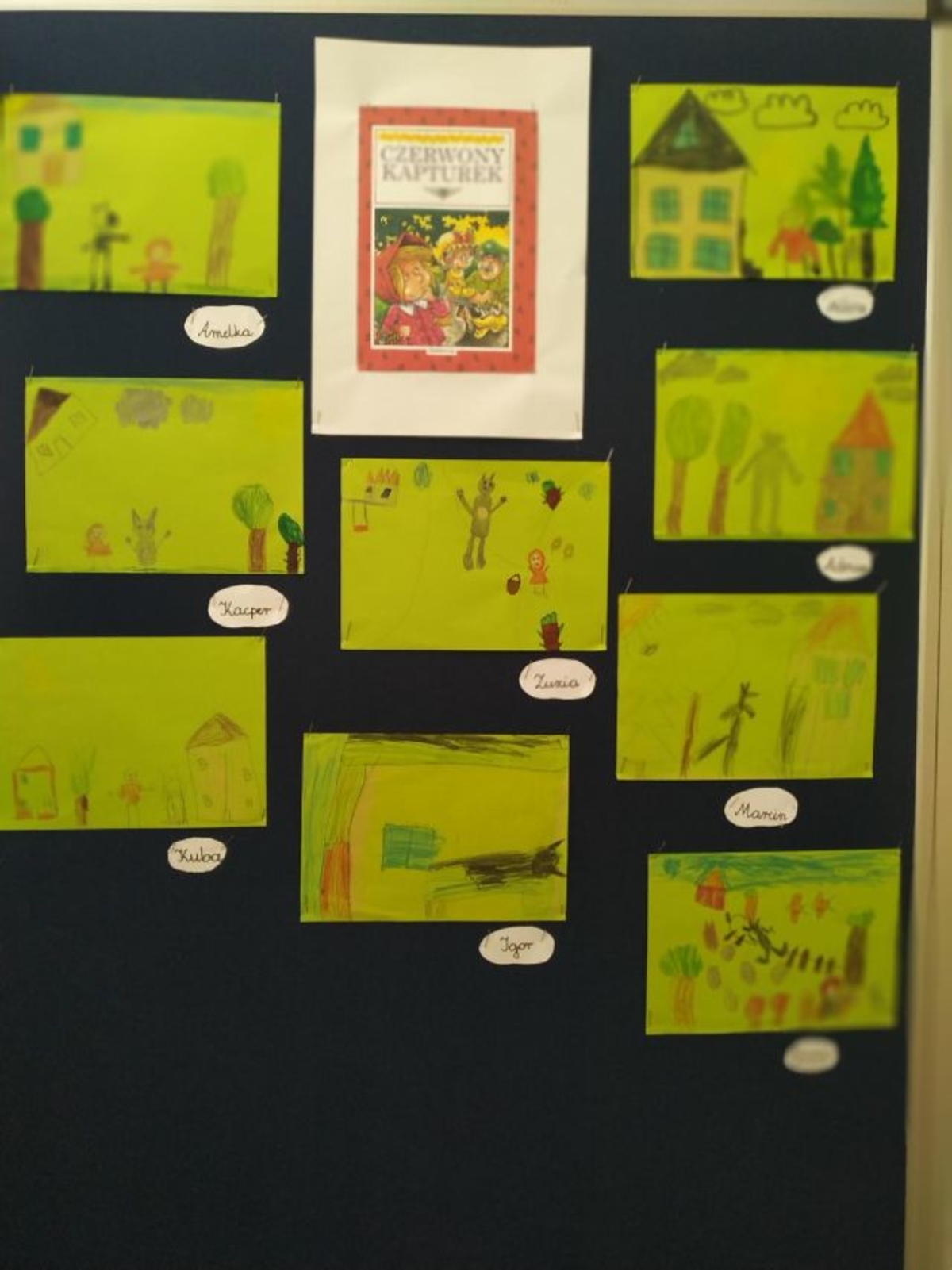 Do każdej czytanej lektury przedszkolaki wykonały piękne ilustracje ,które umieściliśmy na banerze przed biblioteką. Podczas ostatniego spotkania zorganizowaliśmy konkurs ze znajomości czytanych bajek. Dzieci losowały karki i odpowiadały na pytania. Za każdą prawidłową odpowiedź dostawały punkty , po przeliczeniu punktów wyłoniliśmy zwycięzcę ,który otrzymał książkę . Pozostali uczestnicy konkursu otrzymali nagrody pocieszenia.